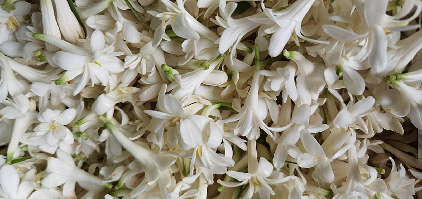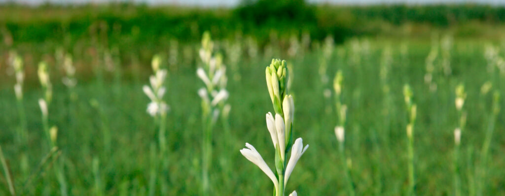 La tubéreuse est une plante vivace à bulbe, qui produit des fleurs blanches en forme d’étoile, disposées en grappes le long d’une tige pouvant atteindre 1,2 m de hauteur. Ses feuilles sont longues et étroites, de couleur vert foncé. Elle fleurit de juillet à octobre, et dégage un parfum puissant et capiteux, surtout la nuit.